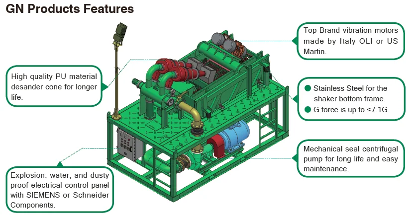 GN контроль сухих остатковЯвляется одним из самых известных международных брендов для системы контроля твердых частиц грязи и управления отходами бурения. GN имеет один упор для решения контроля твердых веществ для бурения нефтяных газов, бурения CBM, HDD и бурения скважин на воду, а также для обработки бурового раствора и т. д.