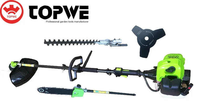 A convenient petrol powered multi-tool which combines a hedge trimmer, pole saw / chainsaw, brushcutter and grass trimmer.