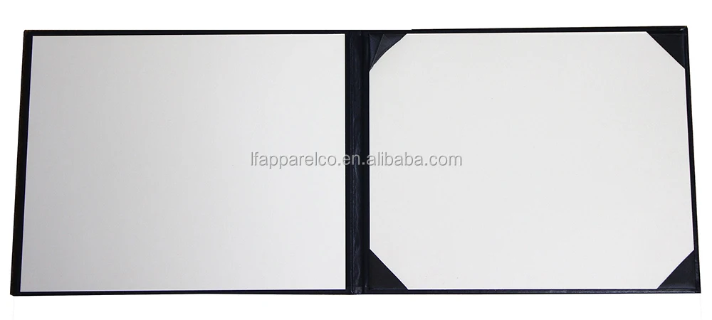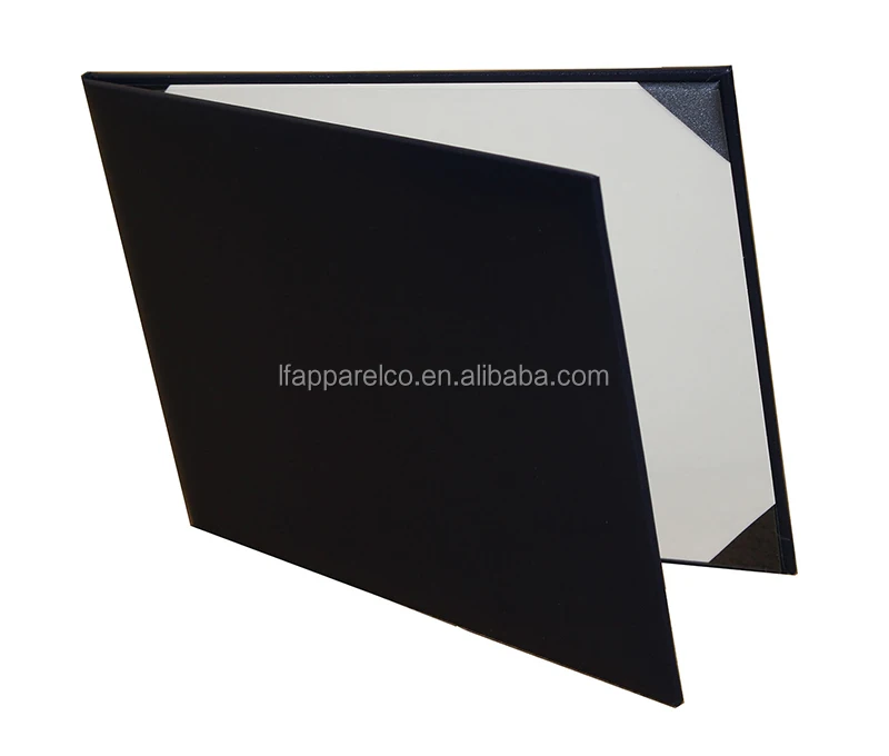 Interior features 4 satin ribbon corners and a transparent plastic film to hold the certificate in place.