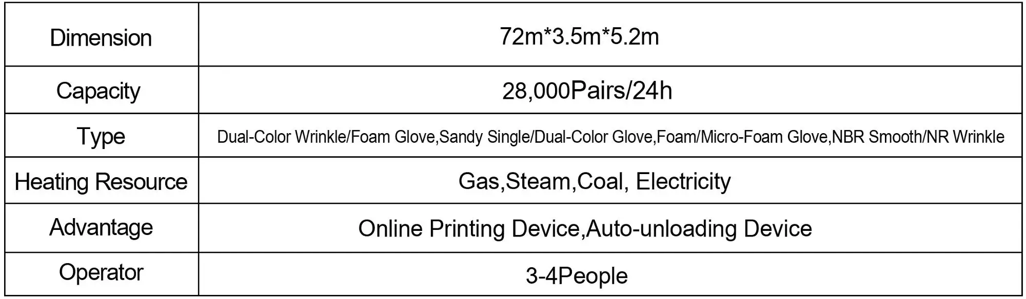 (9)Equipment Output:40000~70000pairs/day