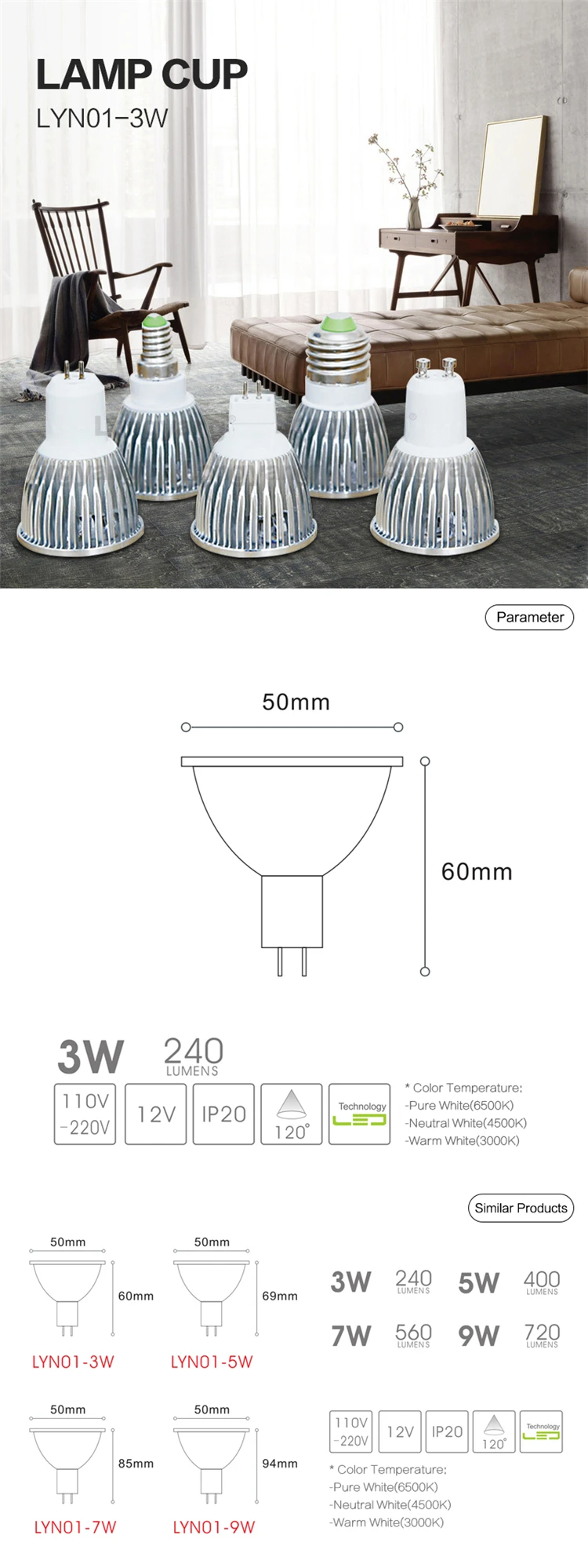 Input Voltage(V) | AC110-220V | Power(W) | 3W |