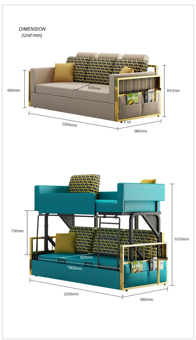 Размер: | Диван 2205*980*810 мм/диван двухъярусная кровать 2205*980*1570 мм |