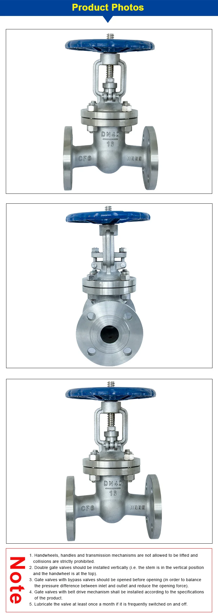 2. It is more labor-saving when opening and closing. Because, compared with the globe valve, whether on or off, the direction of gate motion is perpendicular to the direciton of medium flow.
