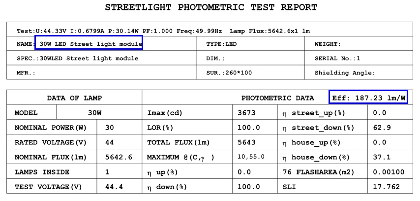 Отчет о тесте IES светодиодного модуля