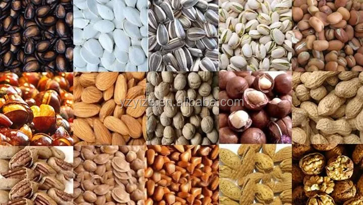 1. Эта машина подходит для жарки всех видов семян, таких как семена подсолнечника, семена арбуза, семена тыквы и т. д. Также для жарки всех видов орехов, таких как сосновая гайка, кофейные бобы, фундук, Фисташковая гайка, арахис/арахис, миндаль и т. д.