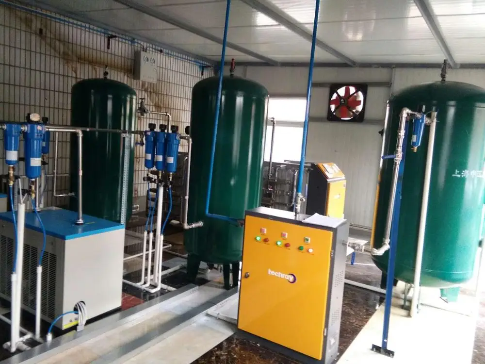 Воздушный компрессор, осушитель воздуха, Интеллектуальный модульный генератор кислорода, Воздушный бак, резервуар для хранения кислорода, кислородный анализатор, контроллер PLC, пневматический челночный клапан, глушитель