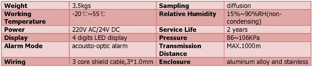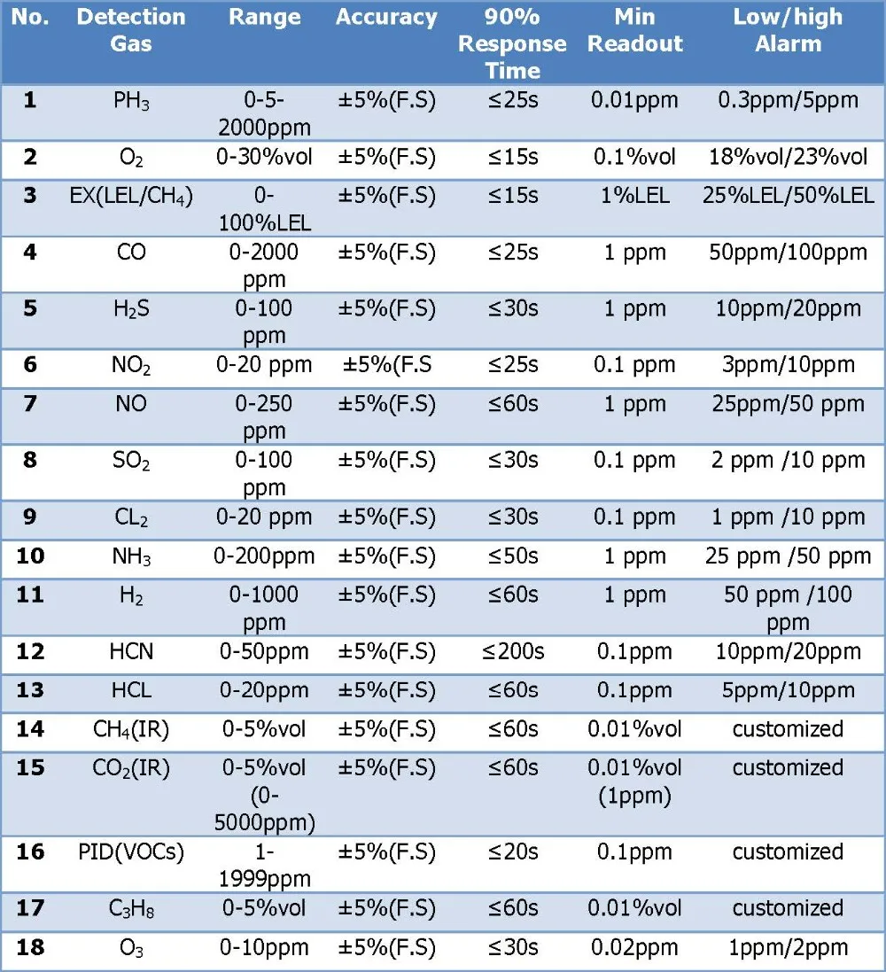 A: Sure. It includes gas type, gas detection range, gas alarm point etc. Please contact us about the detailed specifications.