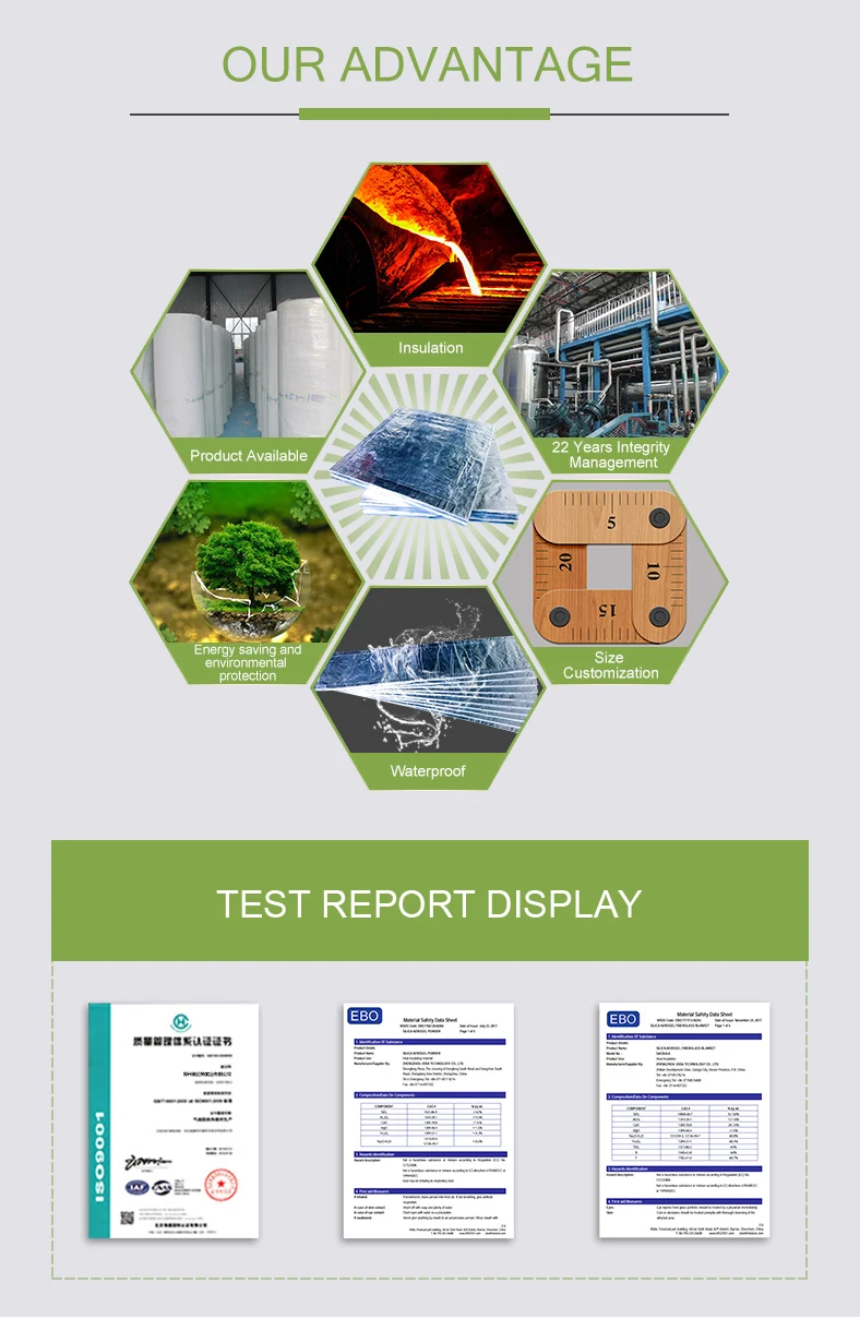 Aerogel Blanket is one flagship product of our company. It is made by compounding Silica aerogel and fiberglass as the basal. It has excellent insulation property, surface hydrophobicity and flame retardant property. Its thermal conductivity coefficient at the normal temperature is about 0.016W(m.k), which is lower than still air. And its hydrophobic rate can reach 99% under normal temperature. It also has excellent flame retardant performance, the fire rate meets the National Standard A1 level. And its working temperature range is widely. Generally, it can work normally in -200℃-650℃ according to the different requirement. In addition, it is easy to cut and install at construction site.
