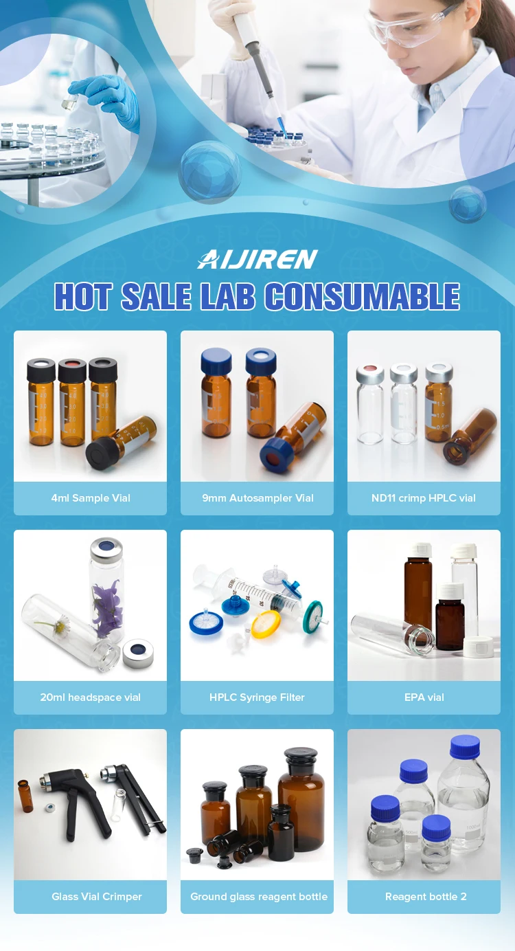 Aijiren mainly supply autosampler vial, HPLC vial, GC vial, septa and caps, EPA vial, TOC vial, COD vial, liquid chromatography and Gas chromatography vial, reagent bottle with GL45/GL80 screw cap and glass stopper. All of the products is wholesale price. Aijiren has serviced more than 4200+ clients, Hope you service you.
