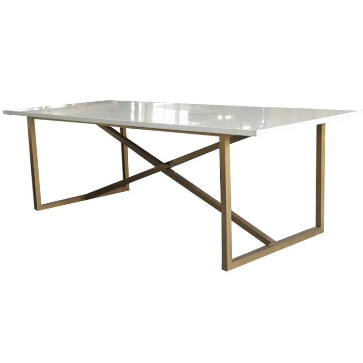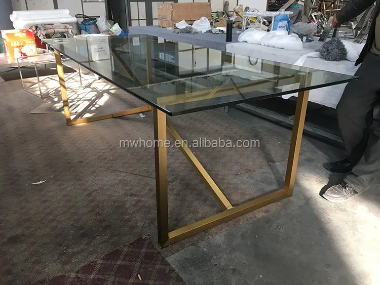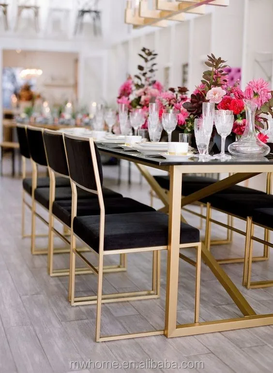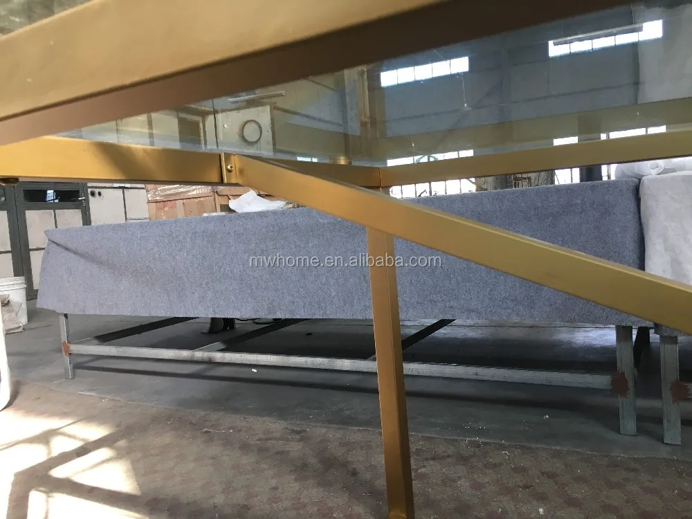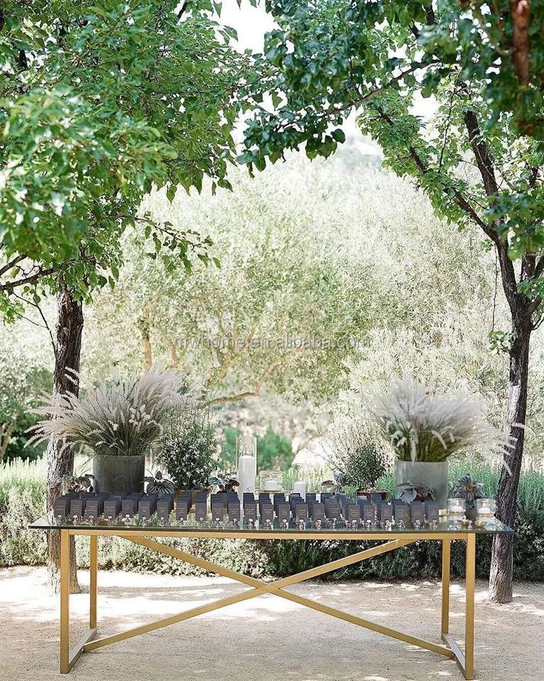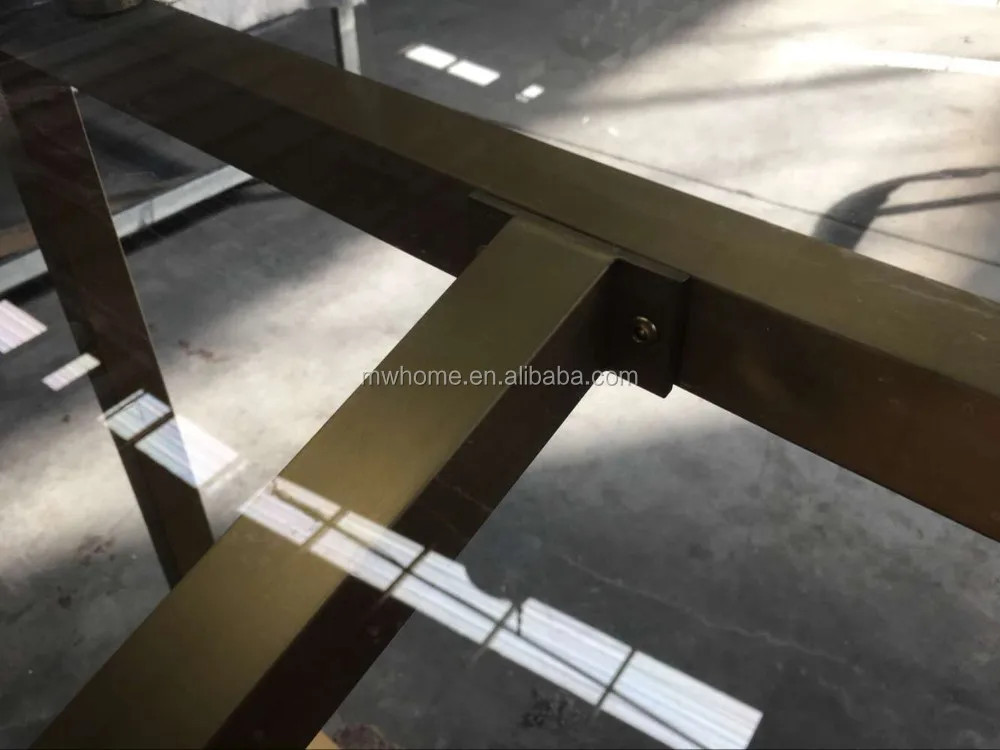 Описание | Стеклянный топ золотой свадебный обеденный стол из нержавеющей стали |