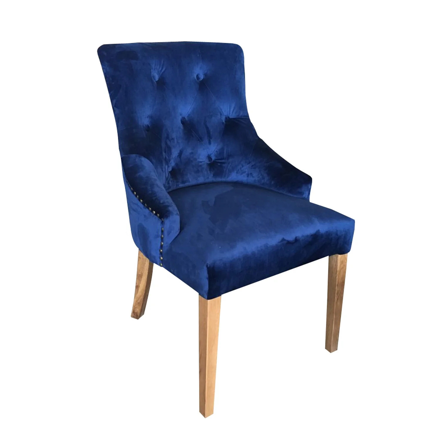 Описание | Французский стиль Свадебный деревянный синий бархатный стул для столовой |