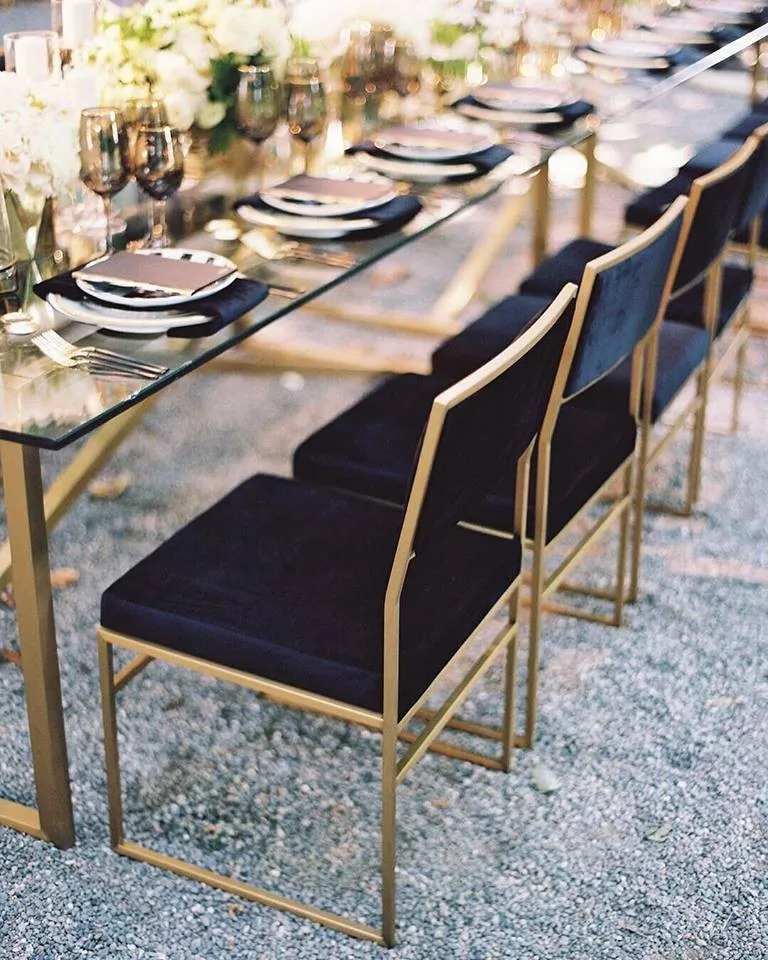 Описание | Популярный стиль золотой из нержавеющей стали свадебный стул темно-синий бархат |