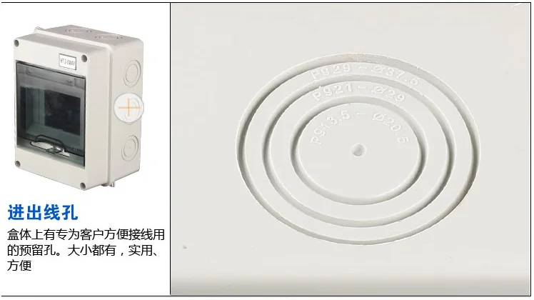 Коробка снабжена резервными отверстиями для удобного подключения клиентов.