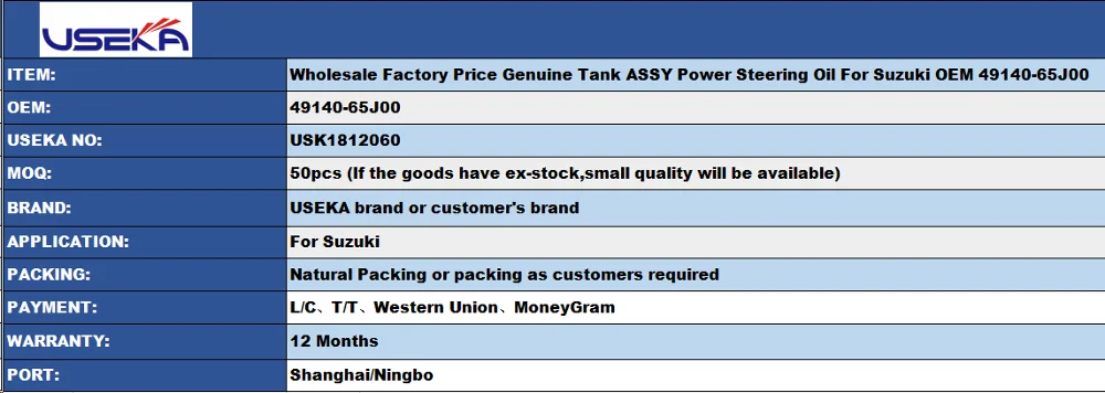 Wholesale Factory Price Genuine Tank ASSY Power Steering Oil For Suzuki OEM 49140-65J00