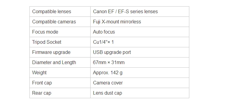 * Позолоченный электронный контакт, функция автофокуса,