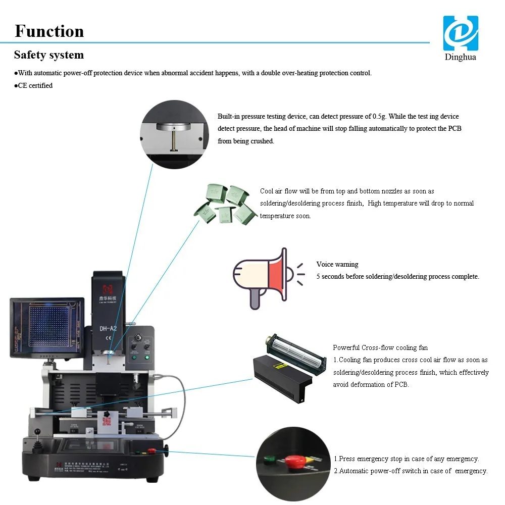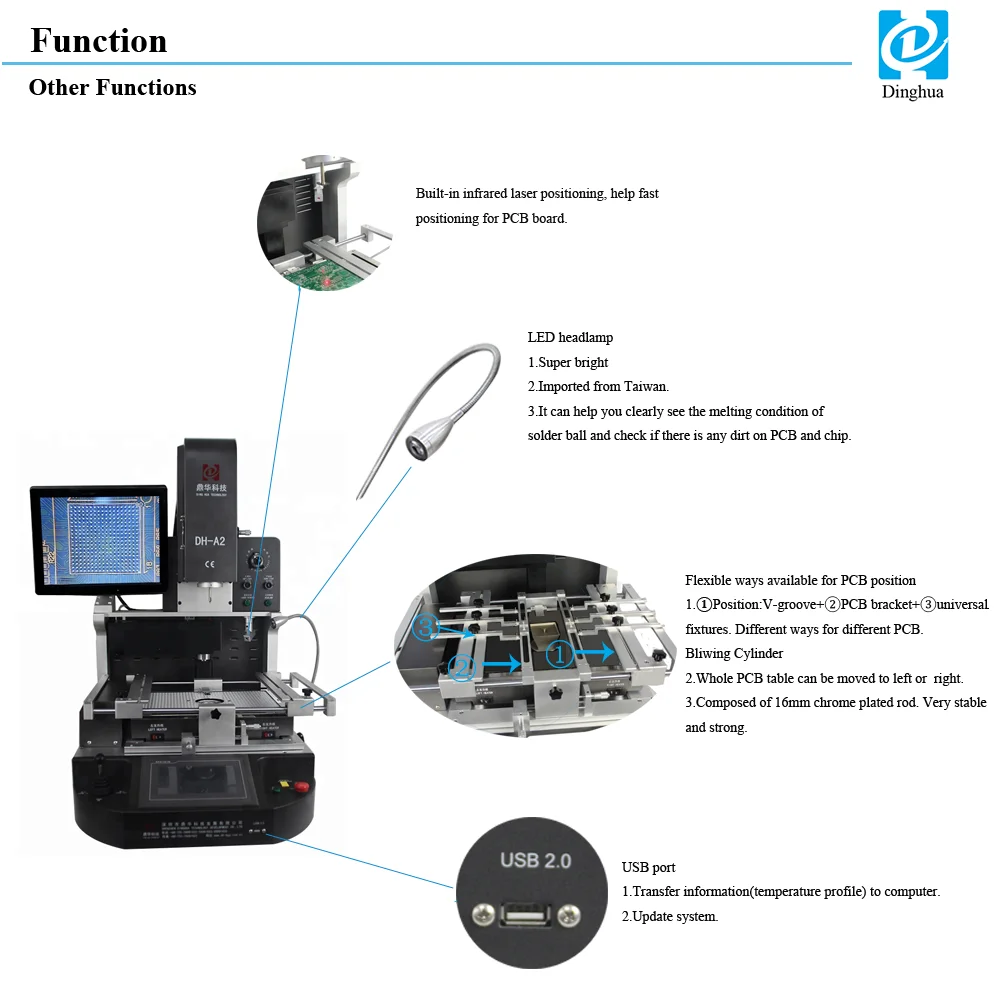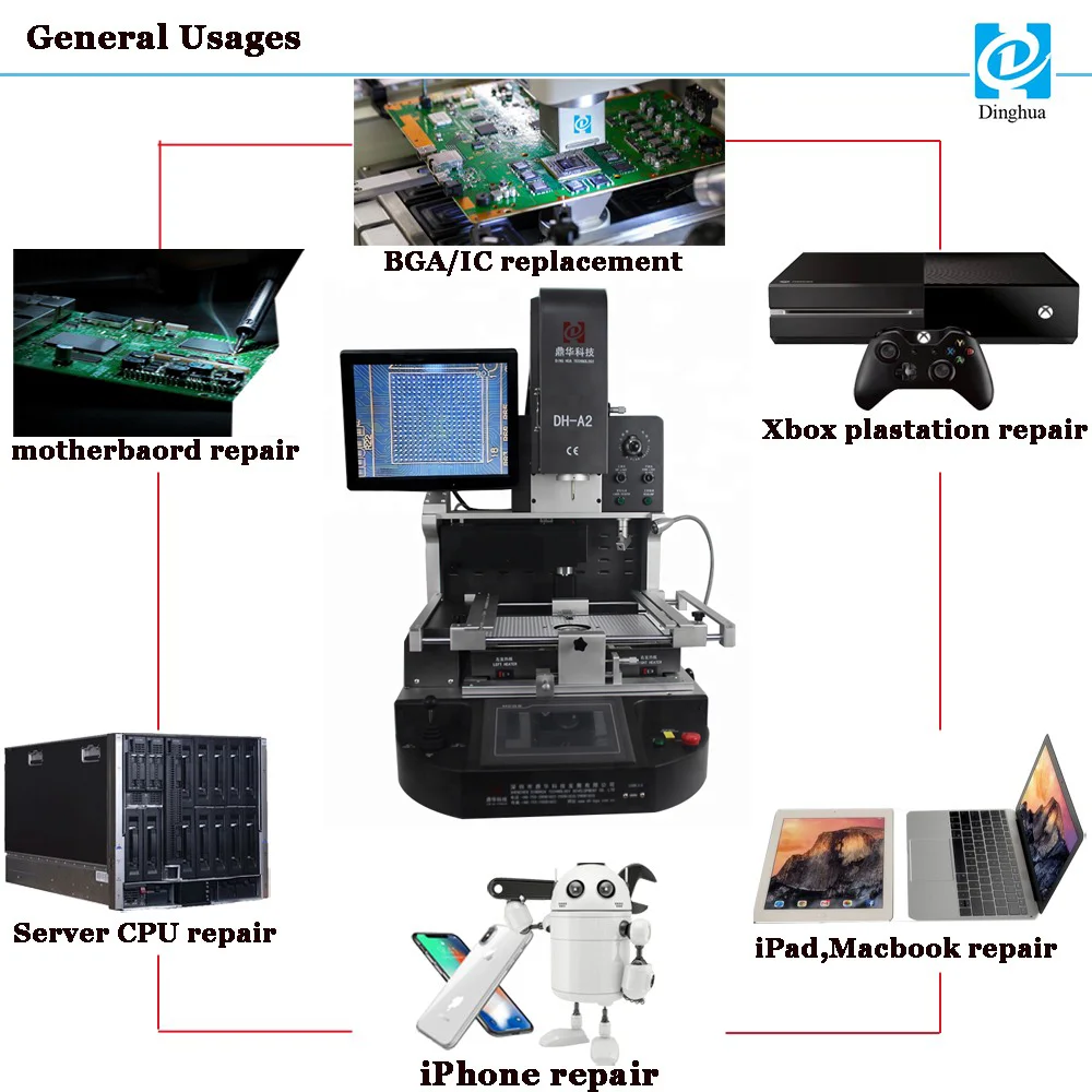 Dinghua DH-A2E automatic laser infrared hot air bga rework station for chip level repairing in motherboards of computer/mobile phone