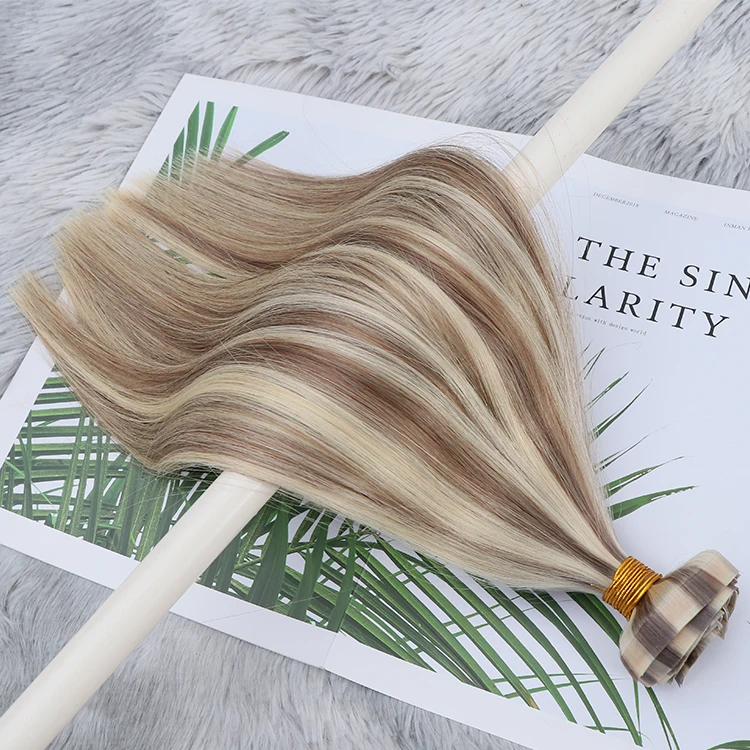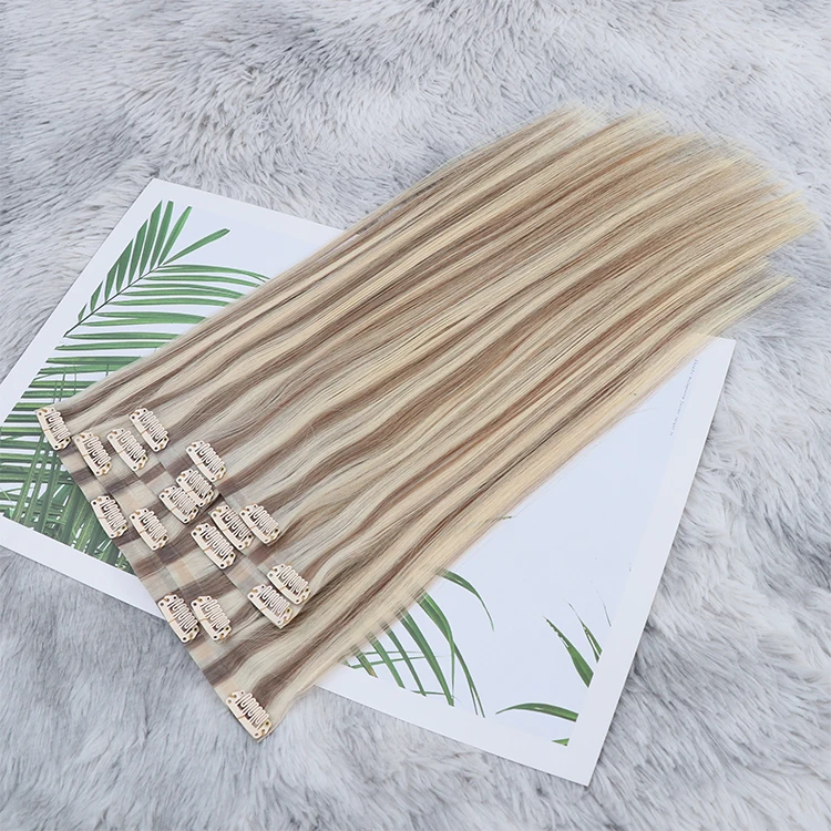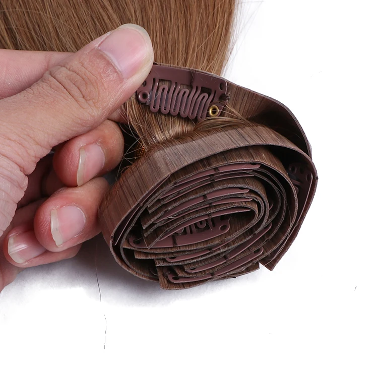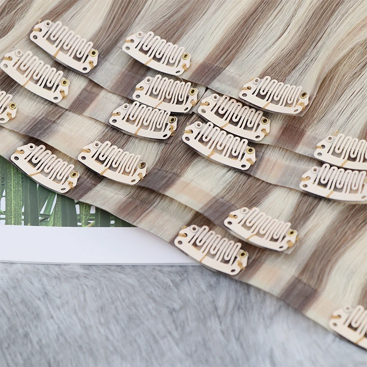 Один донор 12А бесшовные двойные нарисованные ПУ заколки для волос 100% человеческие волосы белых