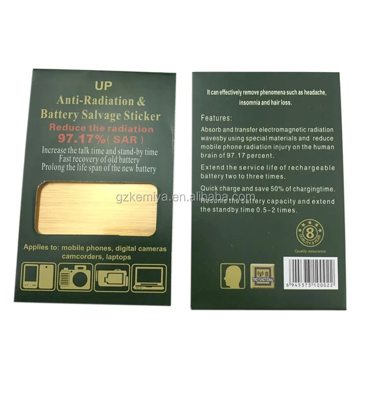 It can absorb and transfer the electromagnetic radiation waves by using special materials and reduce mobile phone radiation inquiry on the human head of 96.43 percent. Extend the service life of rechargeable battery two or three times. Quick charge and save 50% of charging time. Resume the battery capacity and extend the standby time 0.5-2 times. Increase the talking time. Fast recovery of old battery.