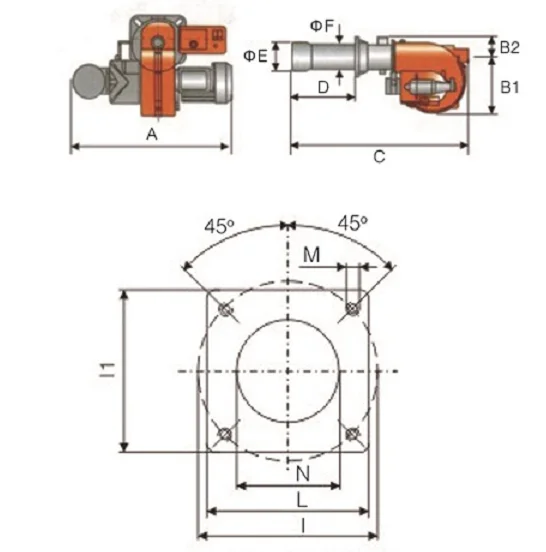 1.Alternate methane gas/light oil burner