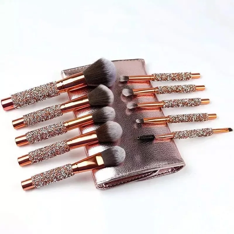 V-5-2 высокое качество веганских материалов не тестировалось на кистей для макияжа от частной марки, изготовленным на заказ логосом прозрачная обувь с украшением в виде кристаллов; Цвета Фонд набор кистей для макияжа US $3.50-$3.80
