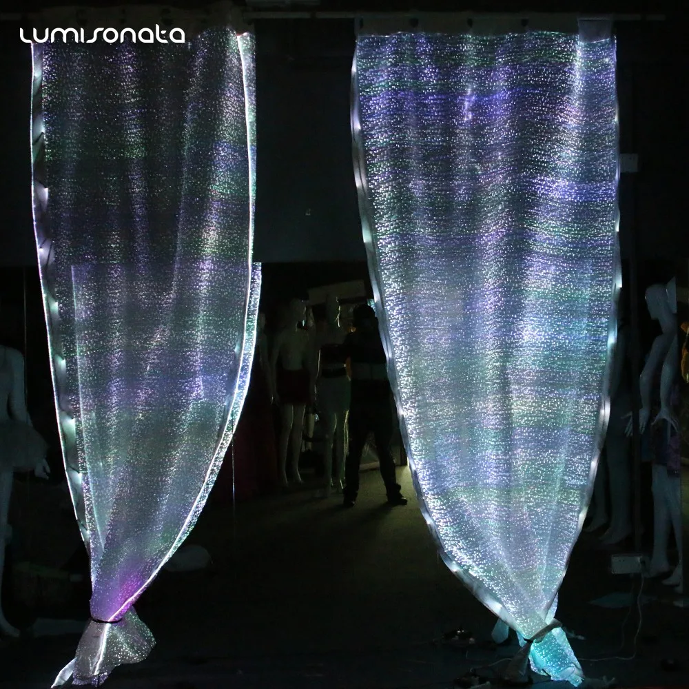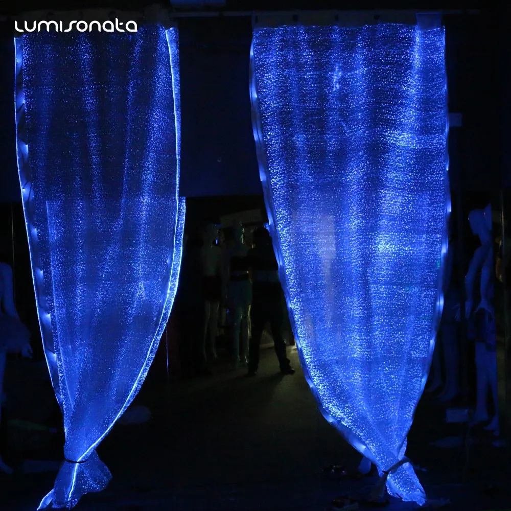 Цветная (RGB) Свадебные украшения прозрачные этап окна Фея блеск изменение цвета гибкие звезда светодио дный волокно PMMA) со светящимся пластмассовым наконечником для штор.