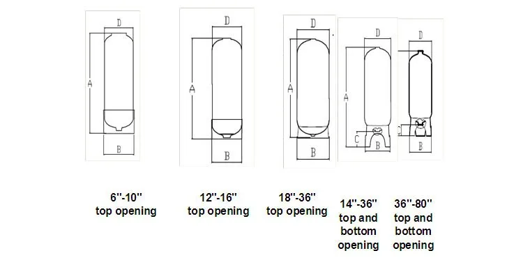 Model(Inches) | Norminal Size(mm) | Opening | Volume | Dimensions(Ф) | ||||||||||