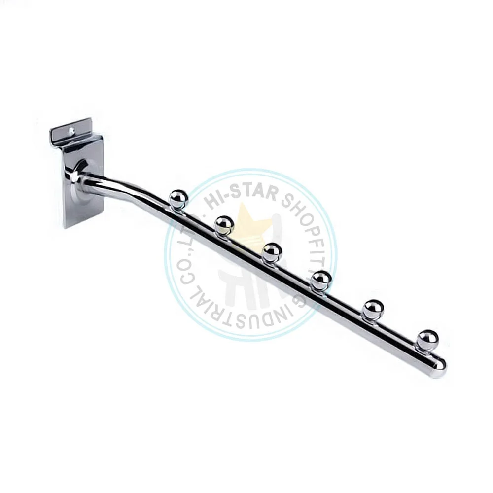 Slatwall slant arm hook for clothing display in retail | |