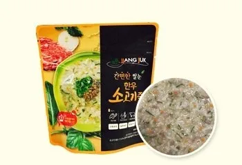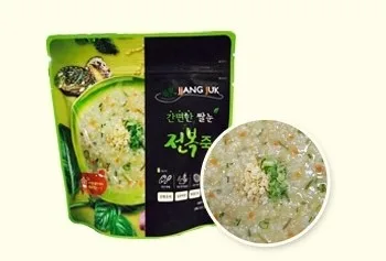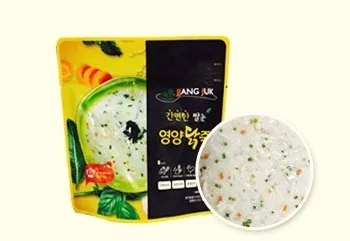 Rice bran Porridge is made by quick-freezing porridge added with rice bran and freeze-drying as is to dewater in the vacuumed state, thereby reducing the destruction of heat-sensitive nutrients and maintaining original taste, nutrition,color and flavor. In particular, it is lightweight, which makes it recommended as a meal for outdoor activities such as mountain hiking.