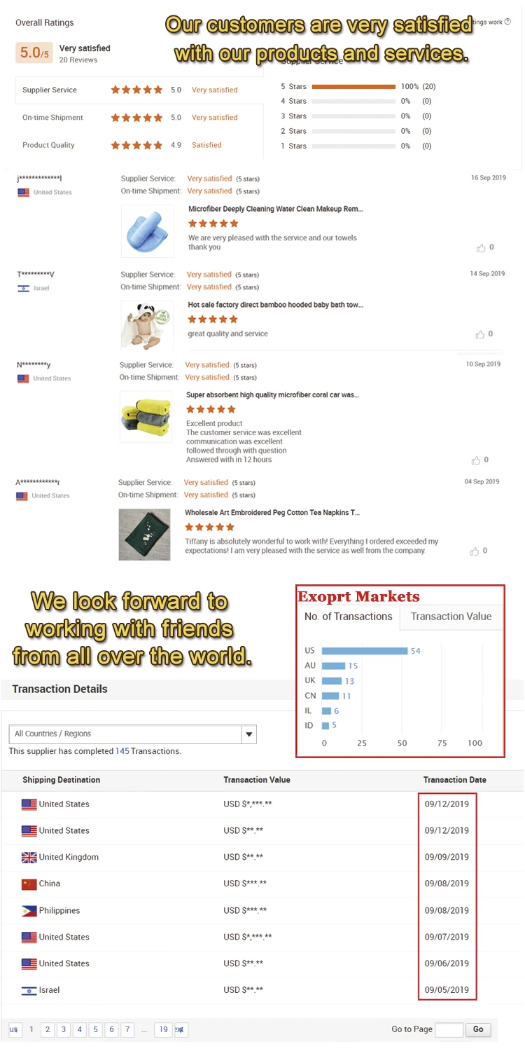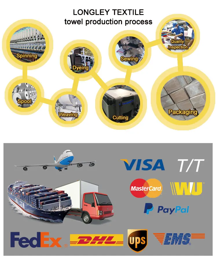 1. Высокоскоростной Электронный жаккардовый станок улучшает качество продукции на 25%. 2. Собственная производственная линия вышивки только для лучшего качества. 3. Предоставление полотенец в различных цветах, текстурах и дизайнах. |