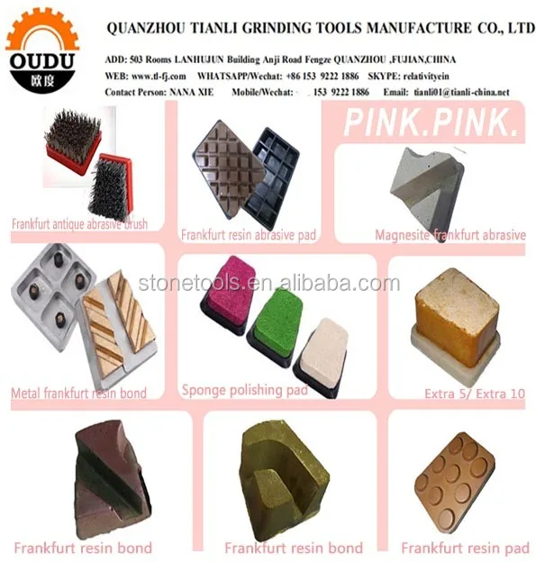 Application: | *polishing colum/slab with abnormal shape *Frankfurt Abrasive is widely used in rough grinding for all kinds of natural stone's surface, such as marble etc. | |