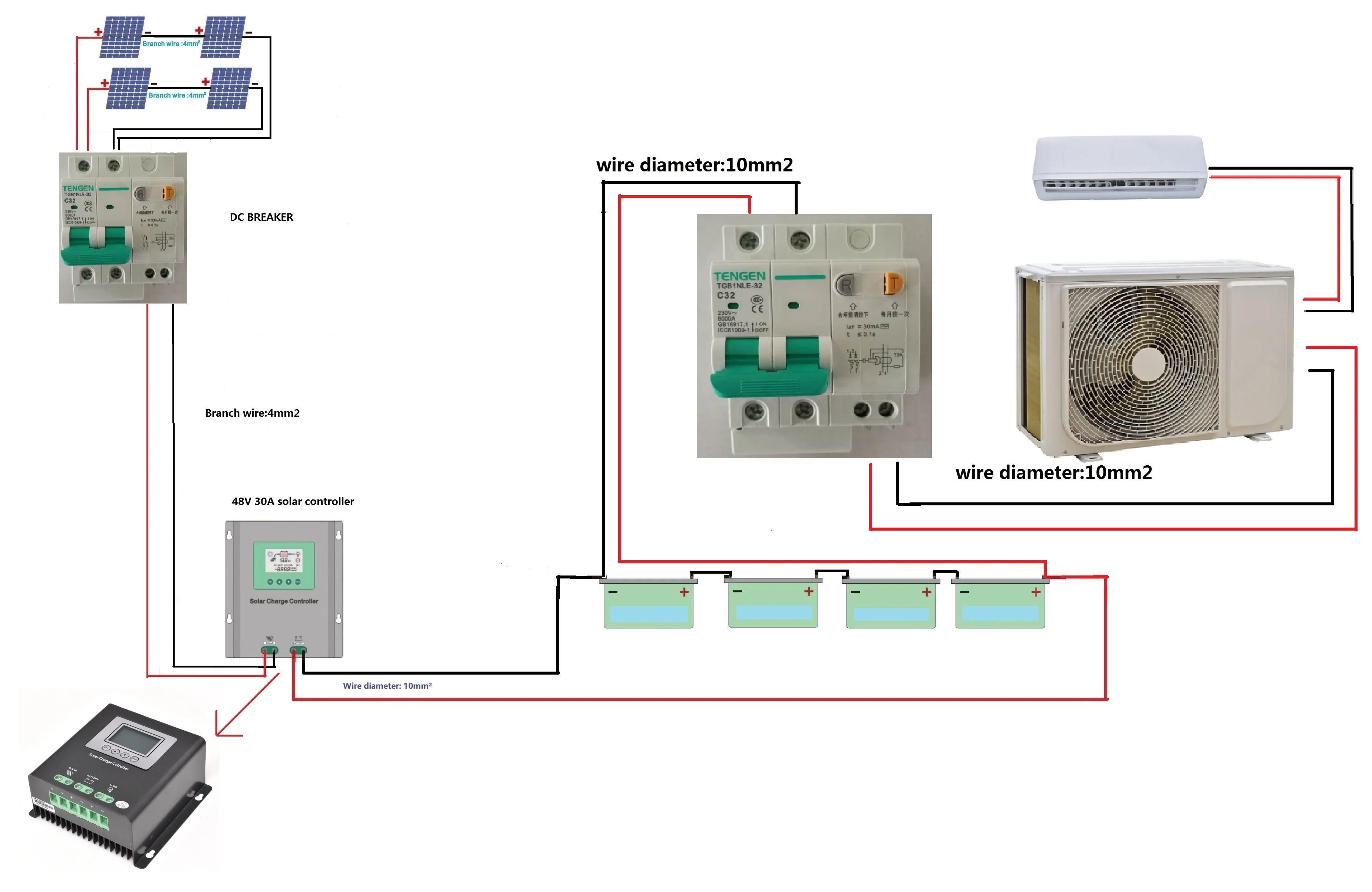 100% solar air conditioner system consists of solar panels, solar charge controller, Gel battery and DC inverter air conditioner. It uses DC power directly without needing an inverter or other AC power source. Thus, 100% DC solar air conditioner can assist people who live in places short of power supply or grid power cost is very expensive to enjoy air conditioner freely and economically.