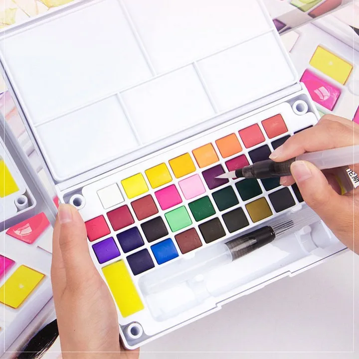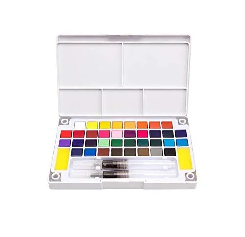 DESCRIPTION: | 36 PCS Artist solid watercolor pan set with 2 PCS water brush 1 pc palette +2 pcs sponge |