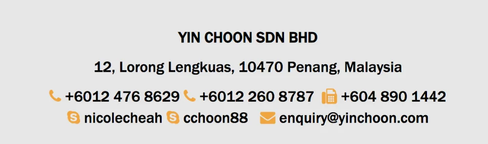 With experience of more than 20 years, Yin Choon Sdn Bhd is well informed about the significant concerns of our clients on reliability, integrity and the ever changing consumers demands over the products range. Therefore, we are always in search of new products and services to be provided to our ever increasing clients around the globe.