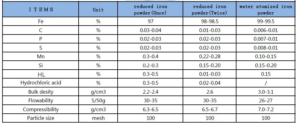 The reduced iron powder is generally produced by the reduction of ferroferric oxide in a hydrogen stream or a carbon monoxide gas stream under high heat conditions, and the main component is a structurally loose elemental iron.