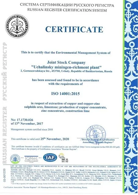 Russian Zinc has been mined in Uchalincky Mining and Processing Factory.