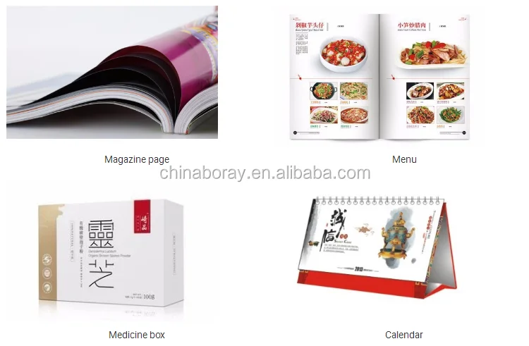 Used for high speed sheet paper offset printing and business cycle printing, mainly for magazines, color pictures, product catalogues, show bills, front covers for books, inserts, publicity products, children's books, annual reports, magazines, high class artwork, appreciation albums, ancient painting and photo magazines, etc.