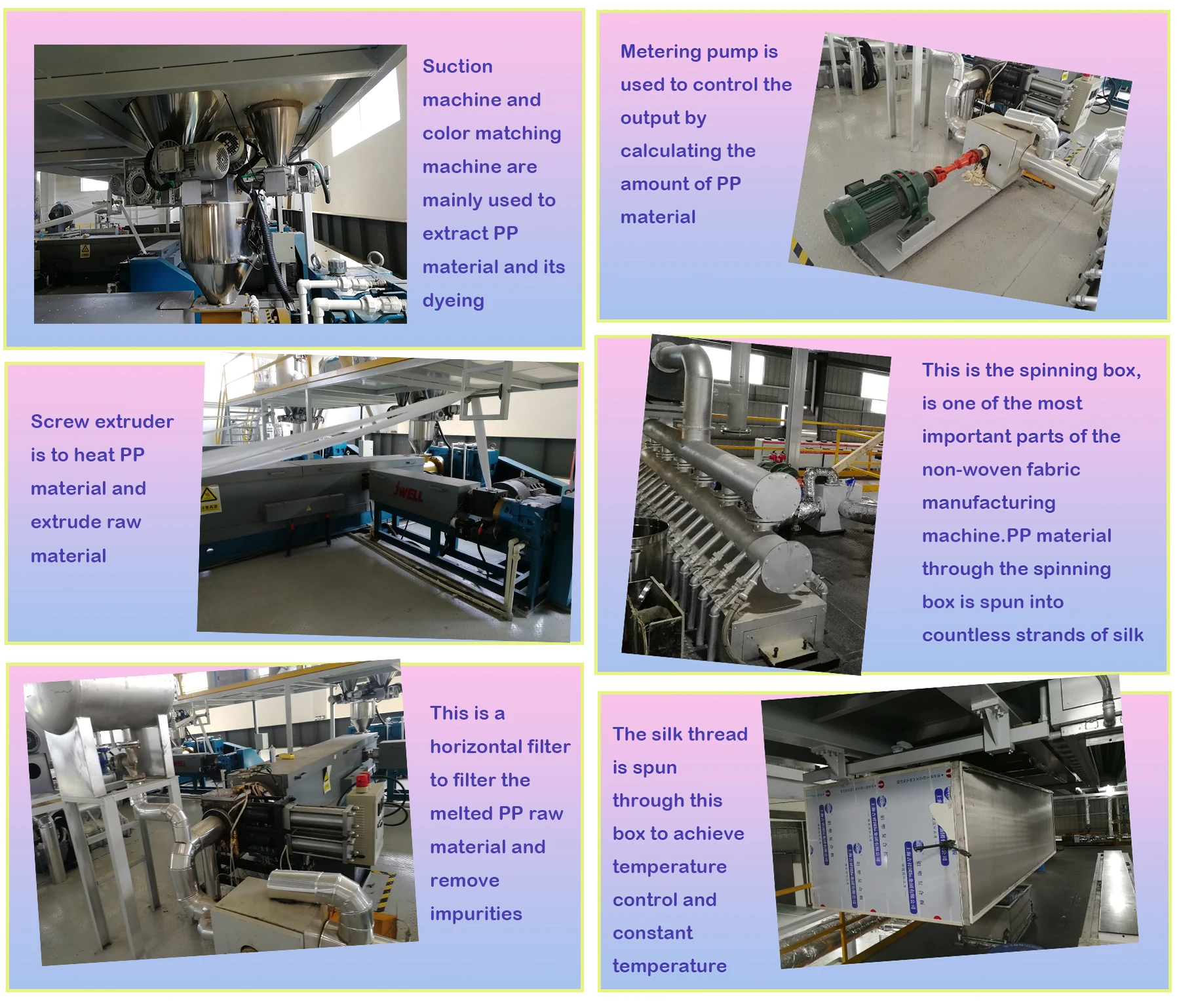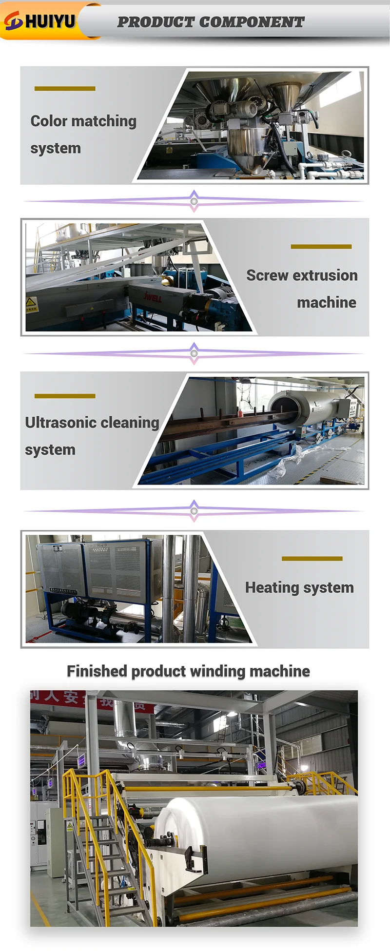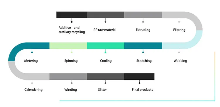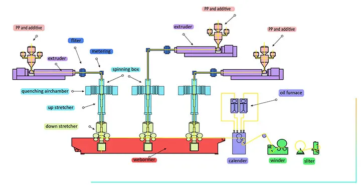 This is the process flow chart of spunbonded non-woven fabric line. The whole assembly line has clear structure and perfect