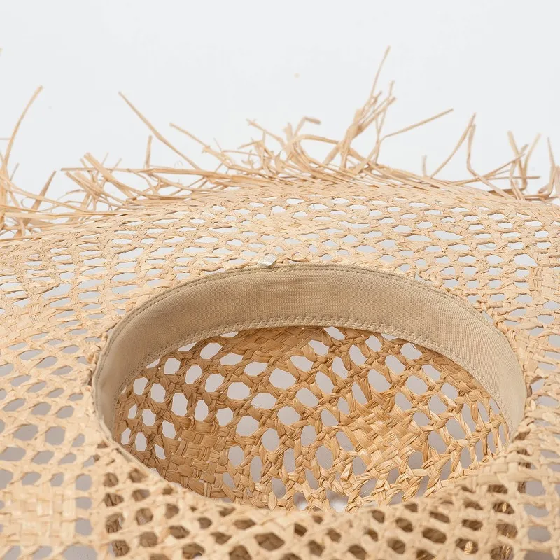 Лидер продаж летняя Новинка полый узор натуральная соломенная большая широкополая шляпа с кантом для