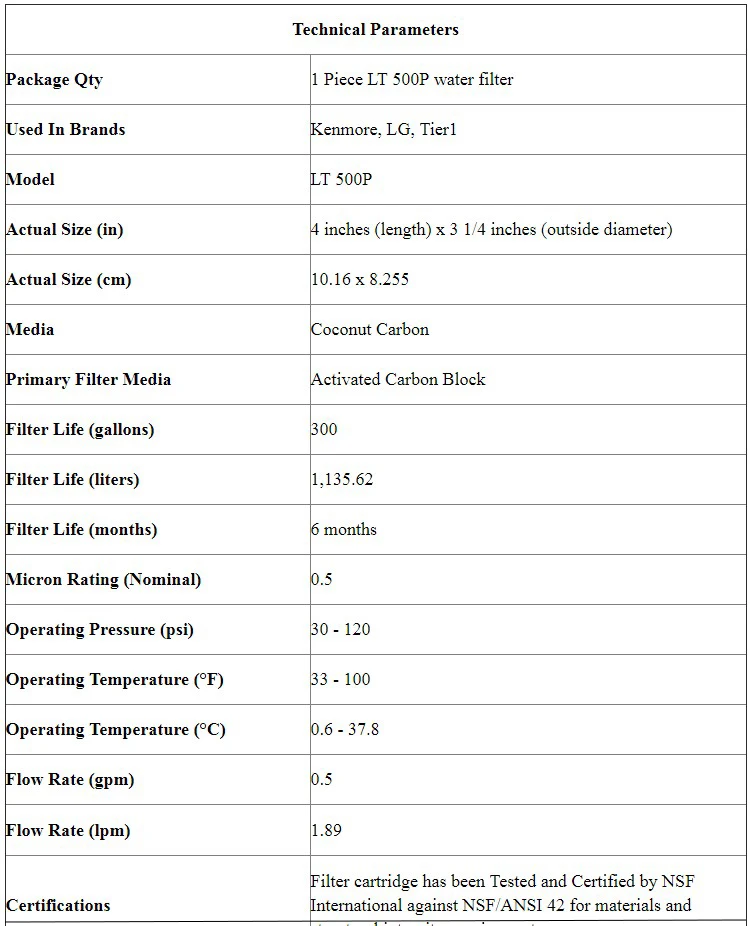 Фильтр для воды в холодильнике по сравнению с моделями LG, которые используют фильтр для воды в холодильнике LT500P или 5231JA2002A, эта сопоставимая Замена Tier1 гарантирует, что вы наливаете и подаете только самую свежую воду и лед в вашем доме! В течение до шести месяцев после установки, которая может быть завершена за считанные минуты, этот фильтр уменьшит загрязнения, такие как хлор, ржавчина, мутность и многое другое. Пейте только самую чистую воду в вашем доме, установив этот фильтр для воды холодильника, сравнимый с LG 5231JA2002A или LT500P.