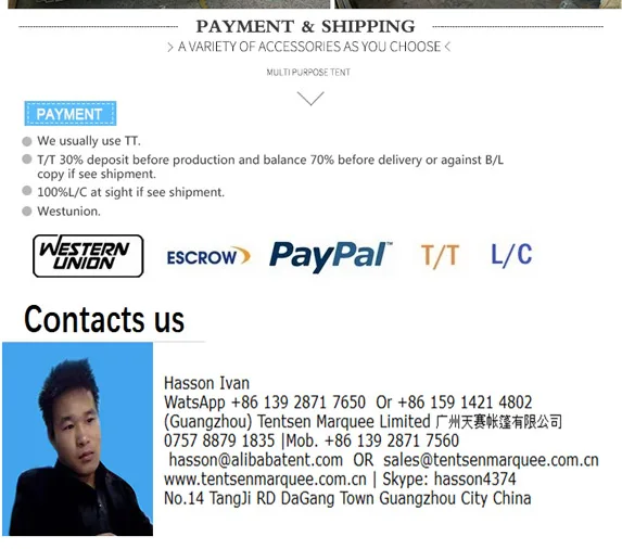Палатка Размеры (Д x Ш x В) | 20,0x9,15x4,5 М (65x30x14,7 ') 40x40x3 мм 60x60x3 мм для лучшего качества. | ||