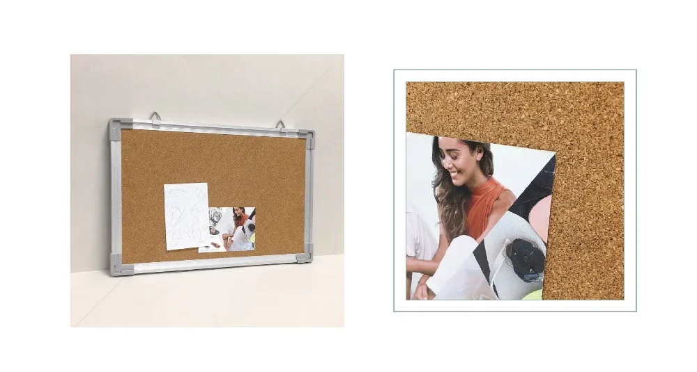Cork board and aluminum frame.