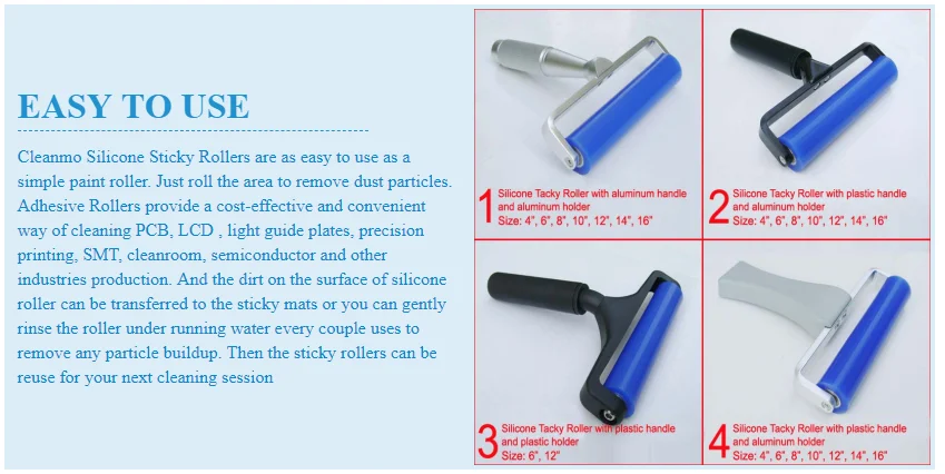 -Храните свои вещи в чистоте-Cleanmo кремния липкий ролик широко используется в печатных плат PCB, ЖК-дисплей, светопроводящей пластины, точность печати, SMT, для чистых комнат, полупроводника, и других отраслей промышленности по производству, чистящие средства для обработки поверхности.