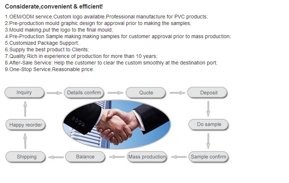 Payment | T/T or other acceptable way/according customer 30%deposit+mould fee before the mass production;70%before the delivery |