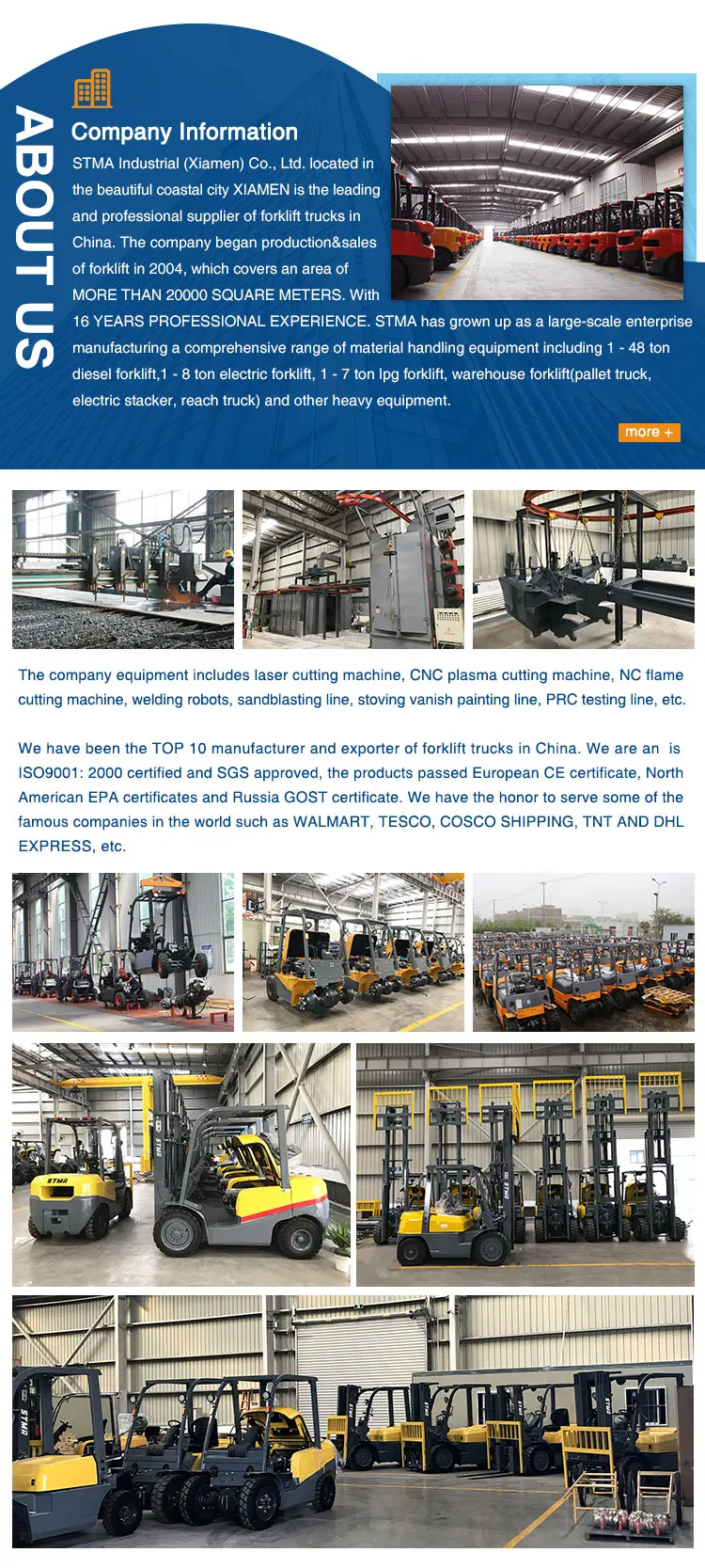 1. STMA Warranty: 1 years or 2000 working hours spare parts warranty for STMA forklifts which occurs first