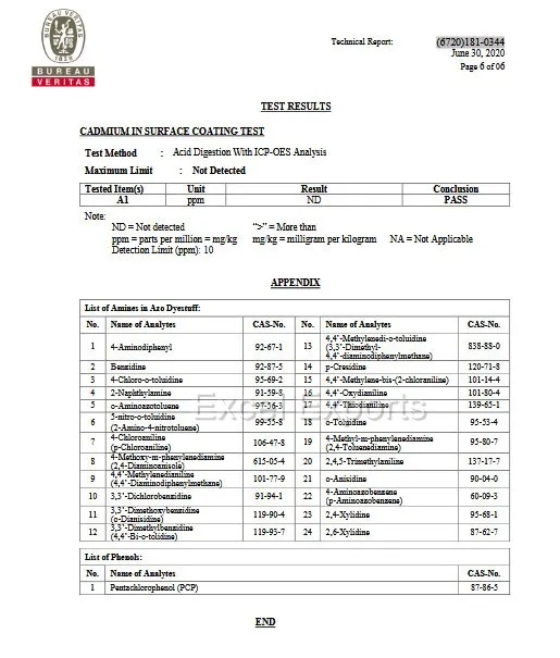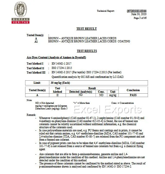 Our Leather cords are Lead Free, AZO Free and free from all hazardous chemicals. Lab test report is attached below.