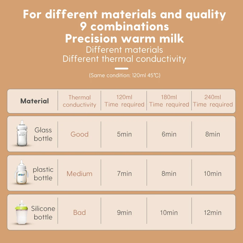 1. Многоразовое нагревание молока 7 в 1: 2. Интеллектуальная функция «Бутылка молока» и функция «Емкость»: 3. Двойная конструкция бутылки: совместима с 95% бутылок молока.
