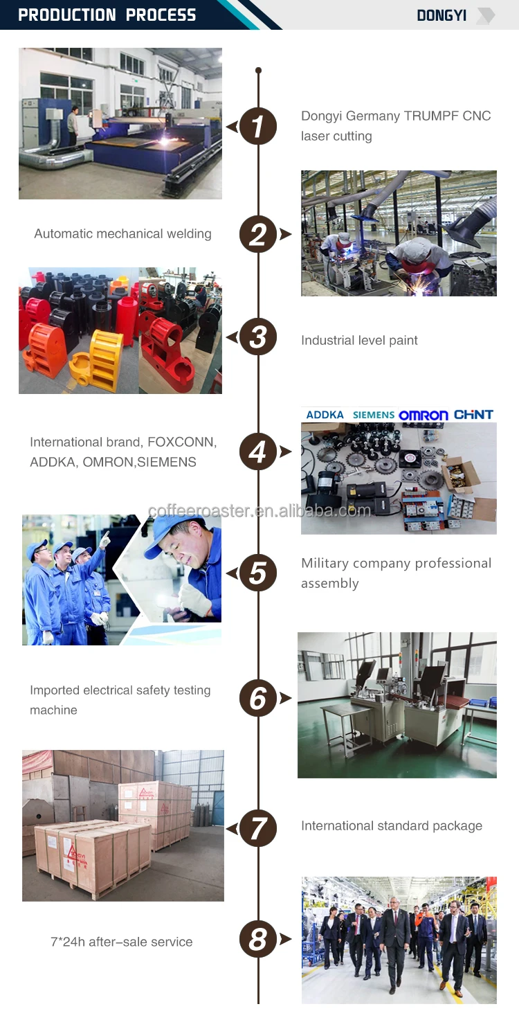 Our main products include: 1kg-6kg small commercial coffee roaster/6-120kg industrials automatic coffee roasting machine/electric nuts roasting machine / grain seeds gas roaster/ Nuts and grain continuous electric roasting dryer/coffee bean feeding machine/de-stone conveyor / grinder