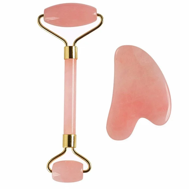 Розовый КВАРЦЕВЫЙ ролик + Gua Sha