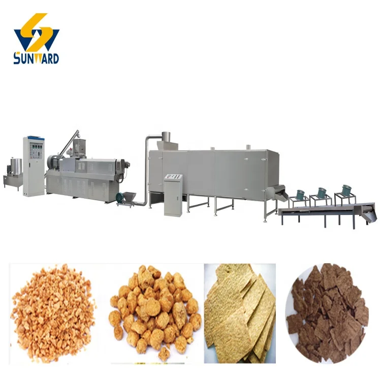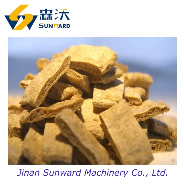 Textured Soy Protein making machine adopts defatted soya flour as raw materials. This production line can be used to produce textured soy protein.