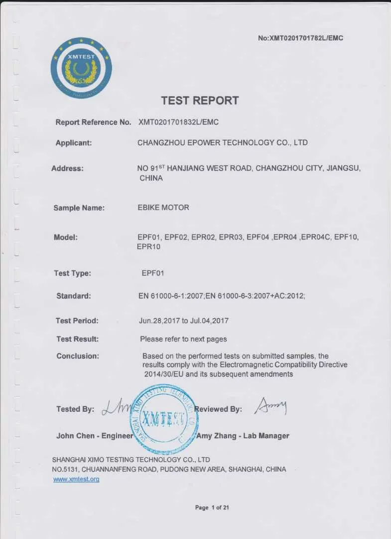 Epower as a professional supplier in Ebike motor and its conversion kits has a long history. Our company is located in Changzhou Jiangsu Province China.